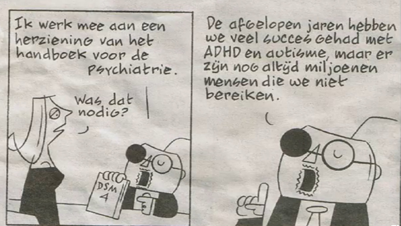 De explosieve toename van het aantal diagnoses ADD en ASS (Autisme Spectrum Stoornis) is door de voorman van de DSM IV en inmiddels spijtoptant, de Amerikaanse emeritus hoogleraar psychiatrie Allen Frances, betiteld als unintended false ‘epidemics’. Ook in eigen land legde hoogleraar klinische psychologie Jan Derksen een voorzichtige vinger op de zere plek: doorgeschoten labeldiagnostiek. Het wachten is op dezelfde erkenning door vakbroeders in de kinderpsychiatrie. ‘ Meer dan waar ook ter wereld zijn in Nederland de in de DSM beschreven categorieën omgetoverd tot echte diagnoses, terwijl ook de makers van de DSM zelf stellen dat psychodiagnostiek iets anders is dan symptomen tellen’, aldus Derksen.