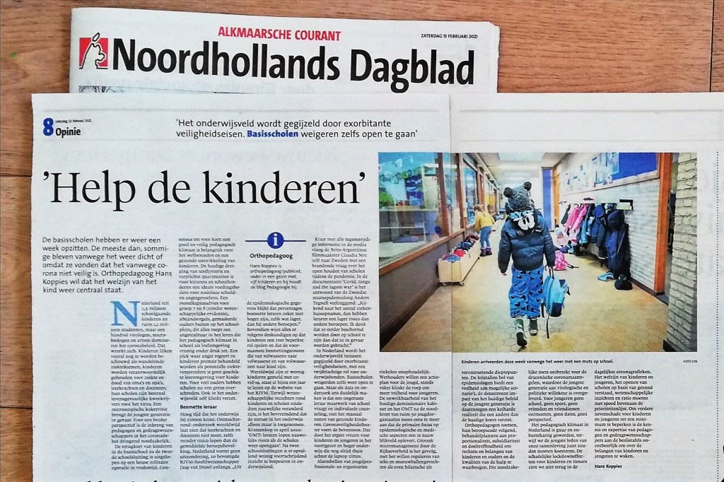 Het pedagogisch klimaat in Nederland is guur en onbarmhartig geworden terwijl we de jongste leden van onze samenleving juist zouden moeten koesteren. De schadelijke lockdowneffecten voor kinderen en tieners zien we niet terug in de dagelijkse coronagrafieken. Het welzijn van kinderen en jongeren, het openen van scholen op basis van gezond verstand, wetenschappelijke inzichten en ratio, moeten met spoed bovenaan de prioriteitenlijst. Om verdere nevenschade voor kinderen en jongeren tot een minimum te beperken is de kennis en expertise van pedagogen en gedragswetenschappers aan de beslistafels onontbeerlijk om over de belangen van kinderen en jongeren te waken.
