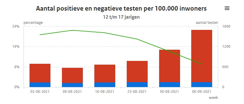 Opvallend is dat de site van het RIVM aangeeft dat het percentage positieve tests in alle leeftijdsgroepen al maanden een daling laat zien die heeft doorgezet na de start van het nieuwe schooljaar. Het gebrek aan kritische geluiden bij onze volksvertegenwoordigers leidt eens te meer tot de pijnlijke constatering dat Real World Data en wetenschappelijke argumenten te weinig zeggingskracht hebben in de Tweede Kamer.