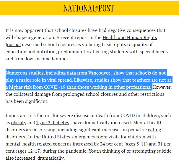 Pooya Kazemi, Tracy Beth Høeg, Jennifer Grant en Martha Fulford – Opinion: Time for kids to get back to normal | National Post, 26 november 2021