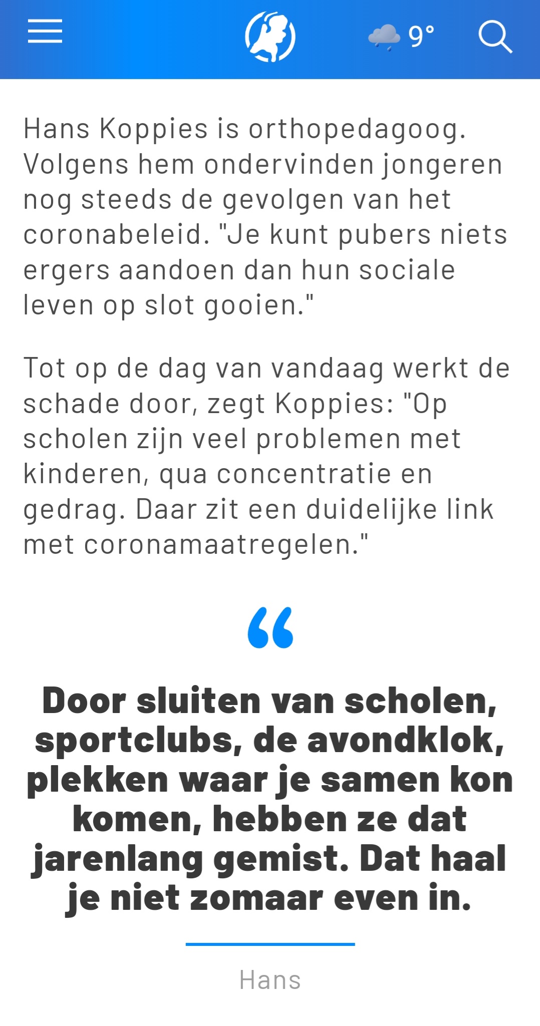 Tot op de dag van vandaag werkt de schade door, zegt Koppies: “Op scholen zijn veel problemen met kinderen, qua concentratie en gedrag. Daar zit een duidelijke link met coronamaatregelen.”