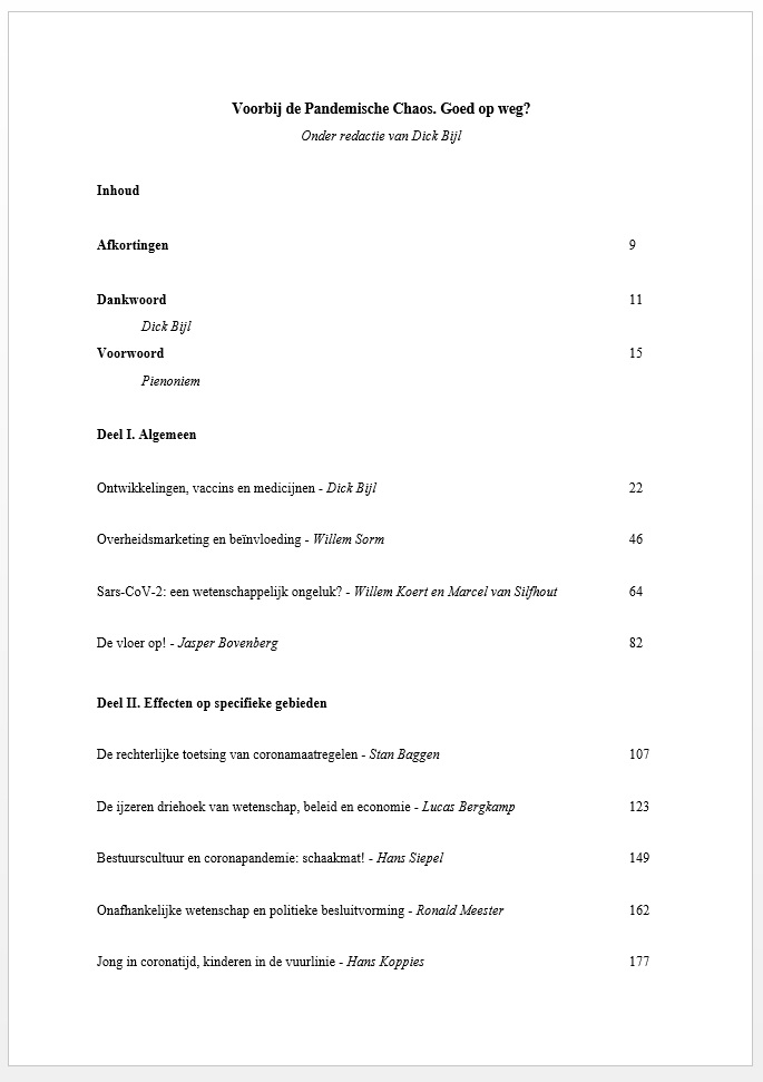 In Voorbij de pandemische chaos. Goed op weg? buigen deskundigen, onder wie internationaal vermaarde wetenschappers, zich over het coronabeleid en de toekomst. In mijn bijdrage een uitgebreide analyse van de coronajaren (maart 2020 – september 2022) en de gevolgen van de covid-respons in Nederland voor kinderen en jongeren. Dit boek is het vervolg op Pandemische chaos. Het coronabeleid onder de loep.