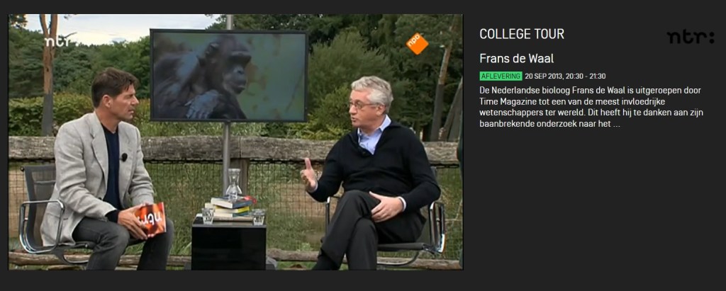 2 gedachtes over “Primatoloog Frans de Waal bracht apen en mensen ‘een beetje dichter bij elkaar’